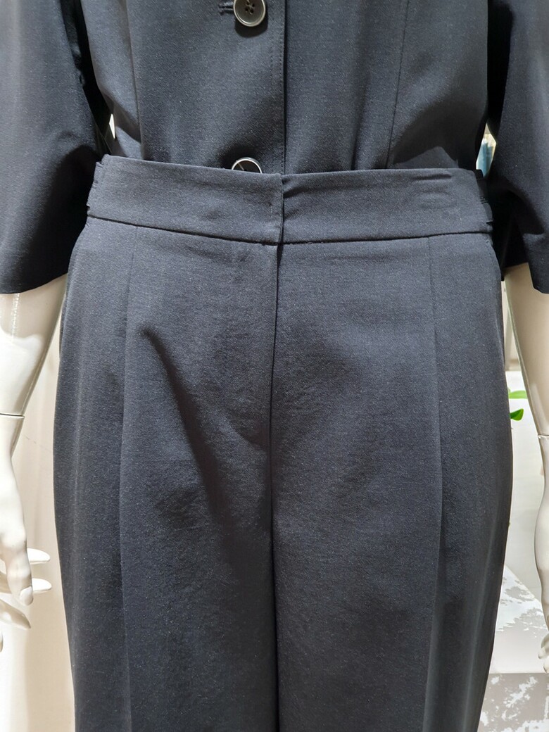 포멀한 무드가 느껴지는 와이드 핏 슬랙스입니다.