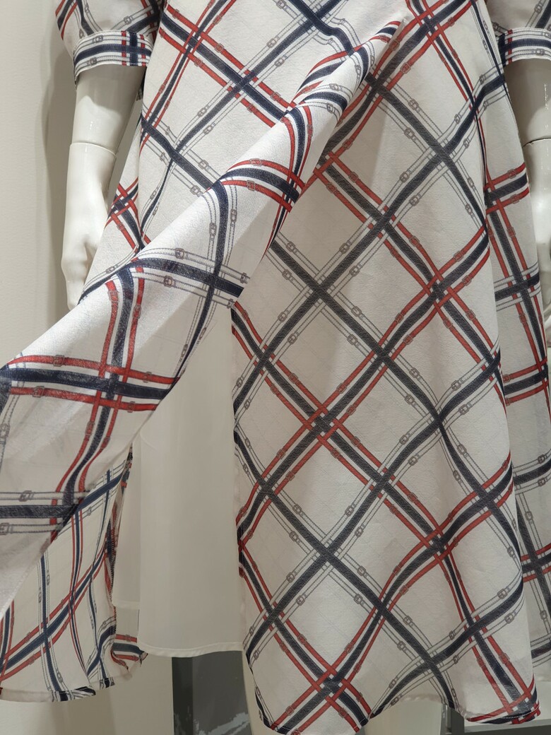 패턴 플레어 쉬폰 원피스 KWOPNE0200