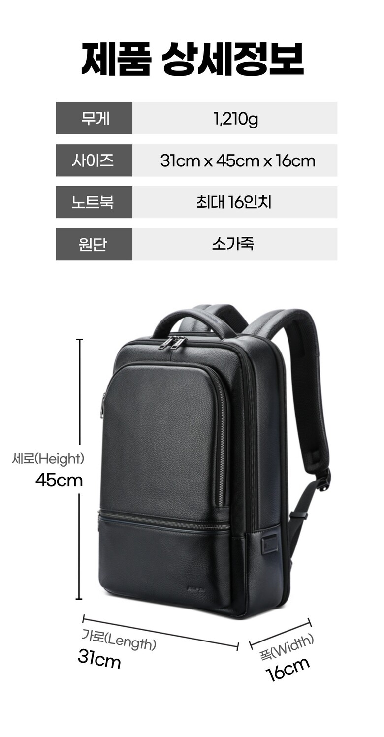 남성 고급 소가죽 회사원 출퇴근 데일리 백팩 가방