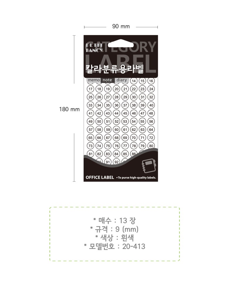 #쁘띠 #라벨지 #20413 #9mm #13매 #흰색 #1~100 #알파 #alpha