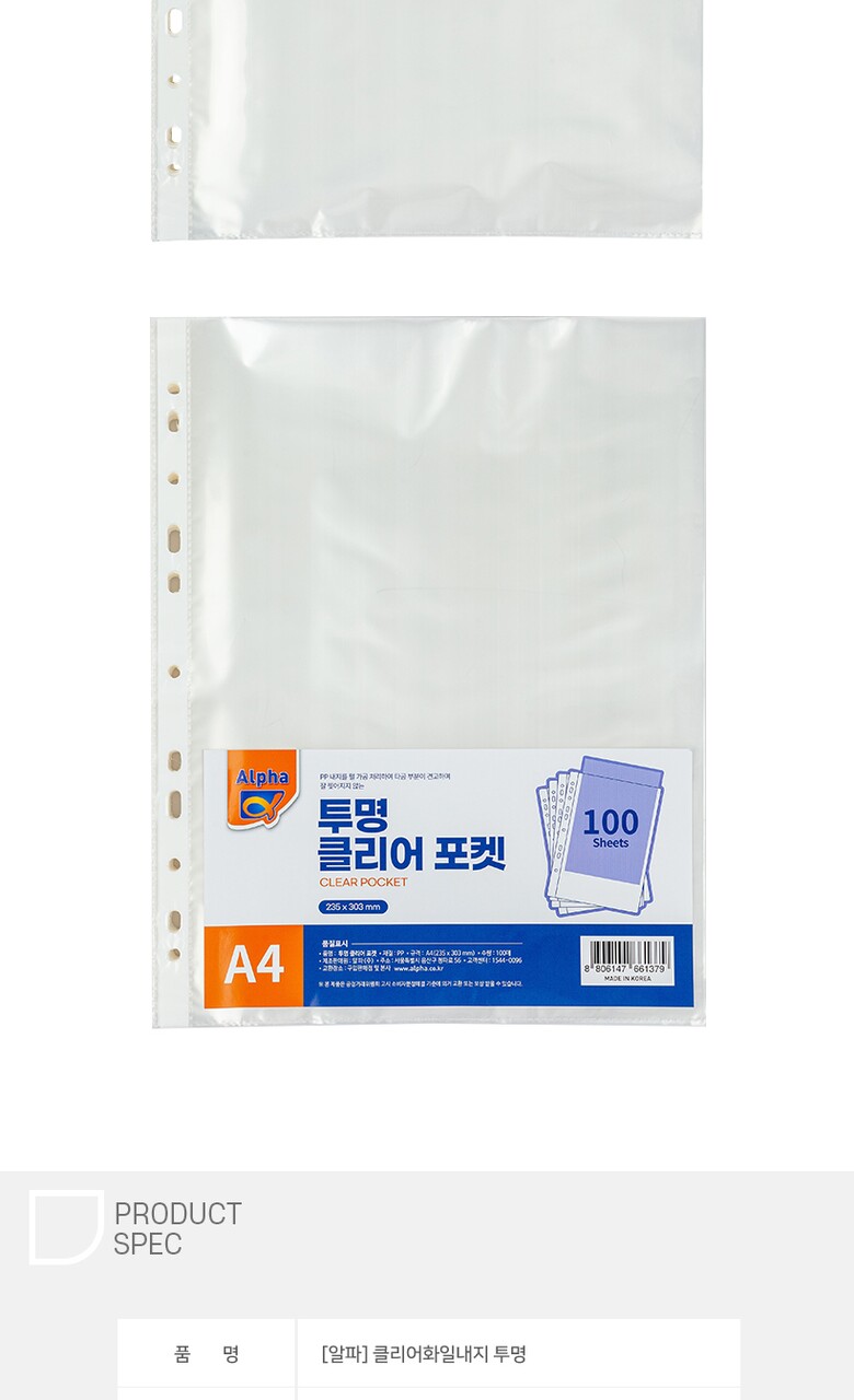 #알파 #클리어화일내지 #투명 #(A4/100p)