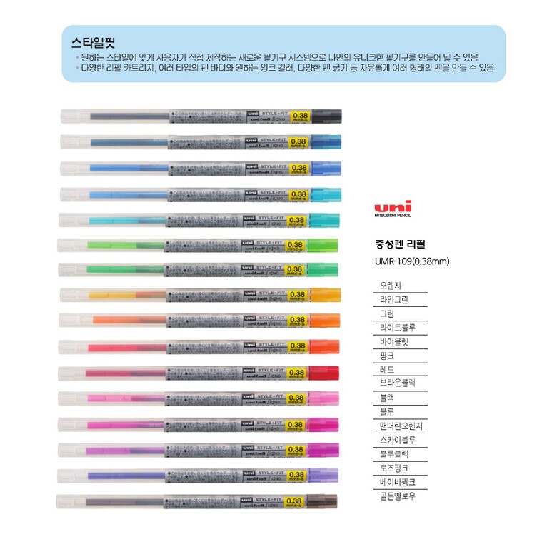 [유니] 유니 중성리필심 스타일핏 UMR-109-38 0.38mm 스카이블루