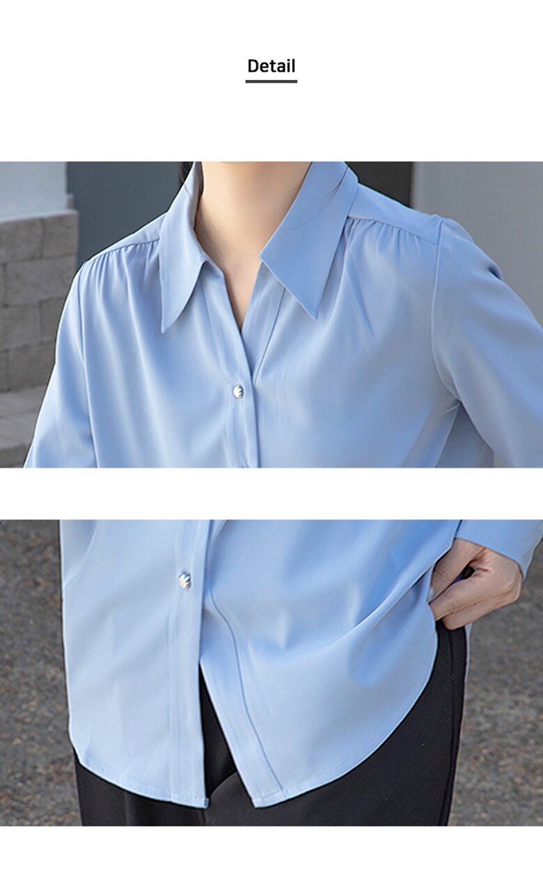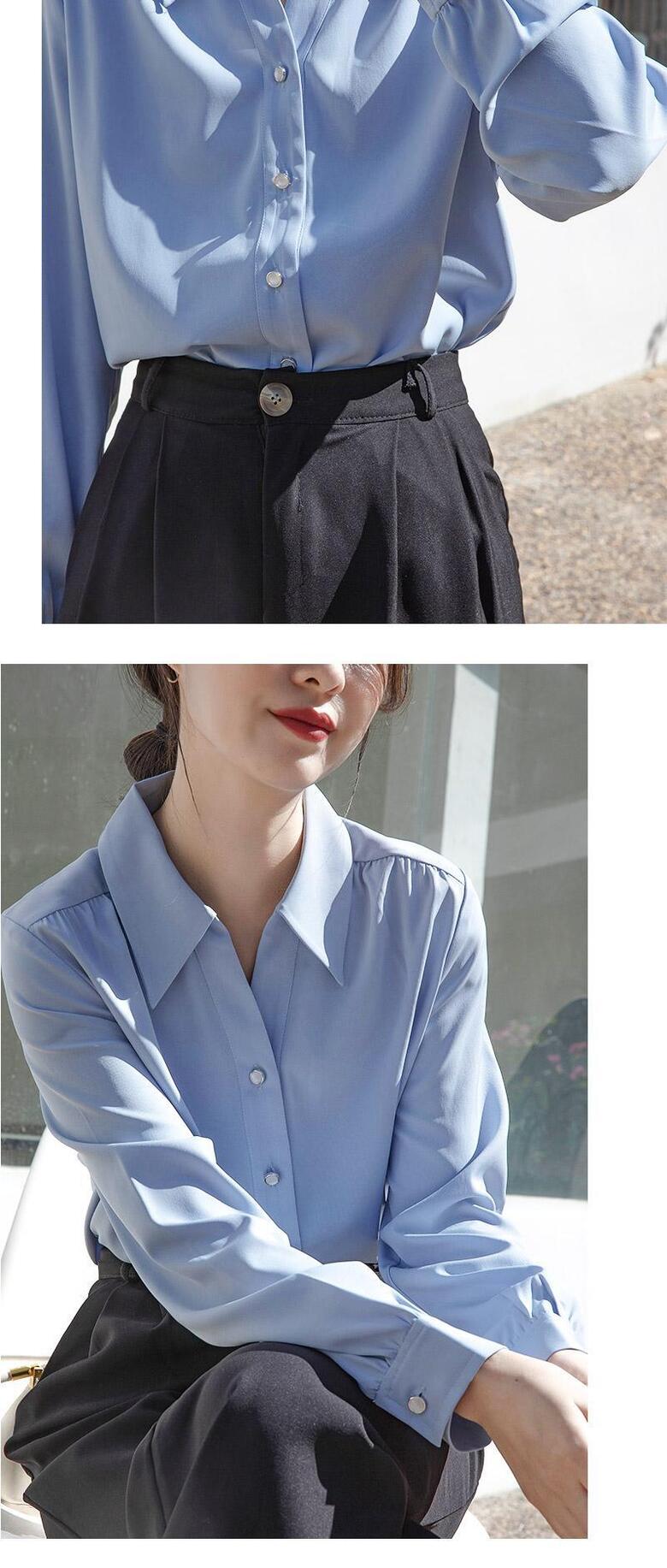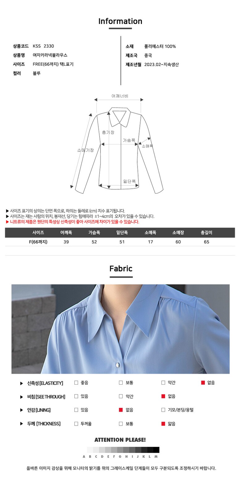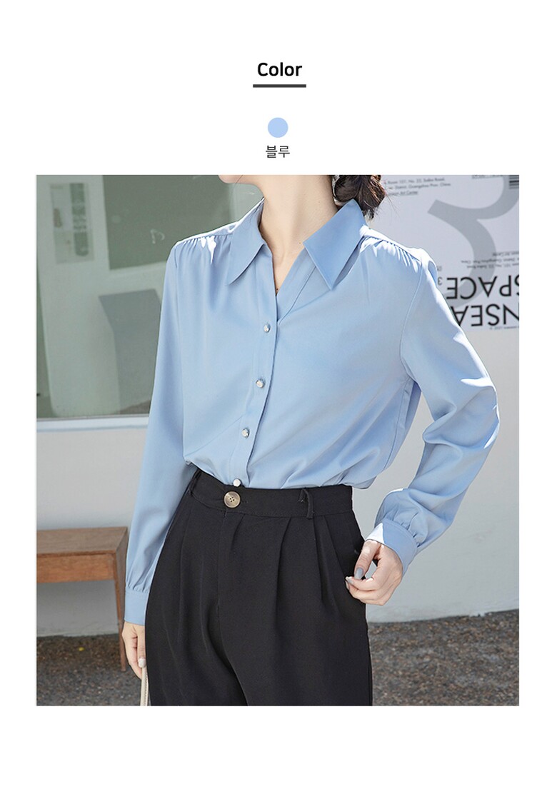 블레오 여성 봄 가을 기본 무지 데일리 긴팔 카라 블라우스