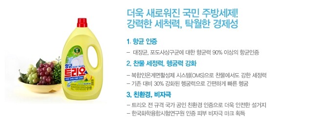 항균 트리오는 항균력 90% 이상의 항균마크를 획득한 제품으로