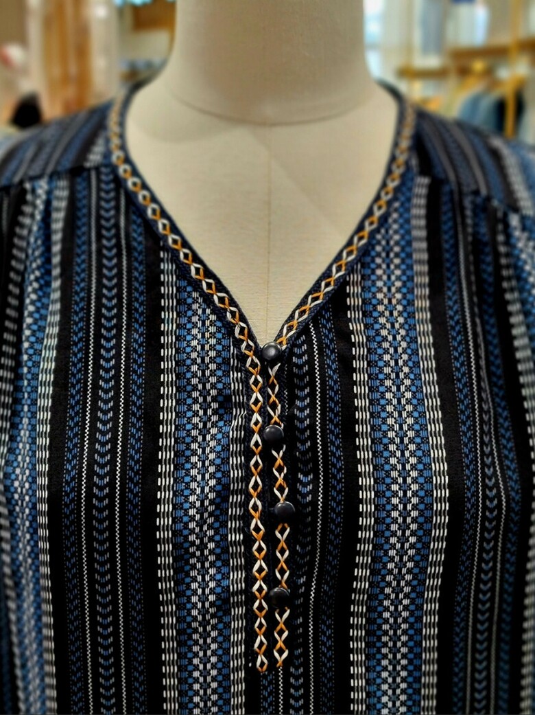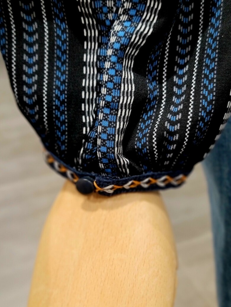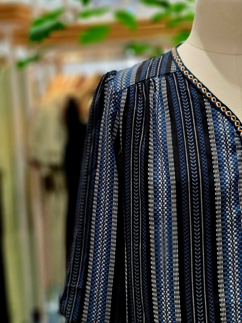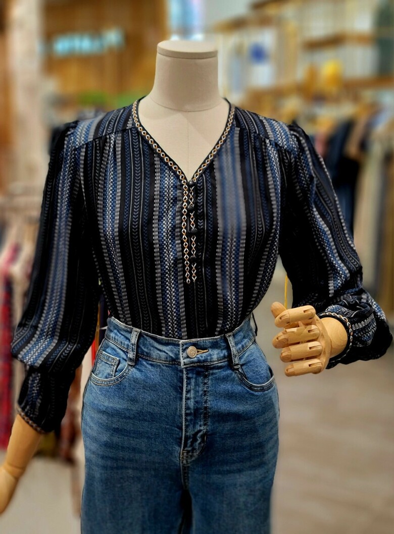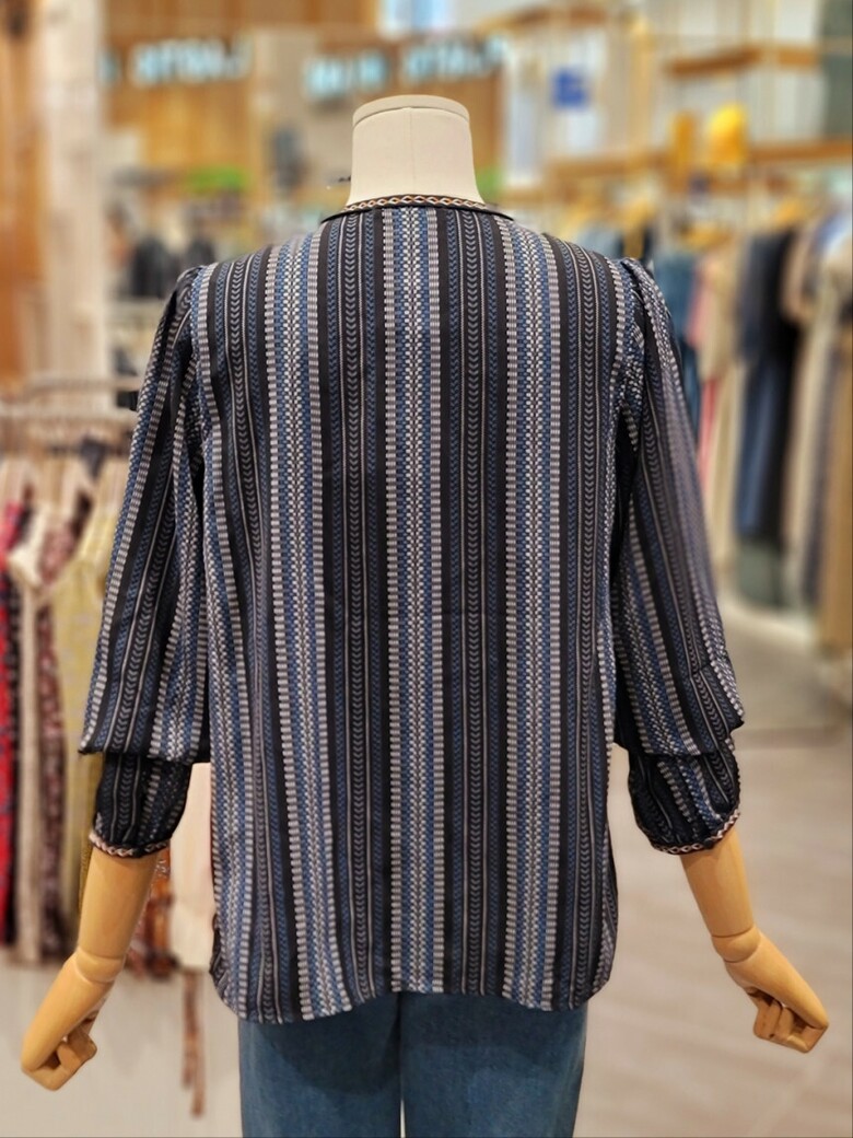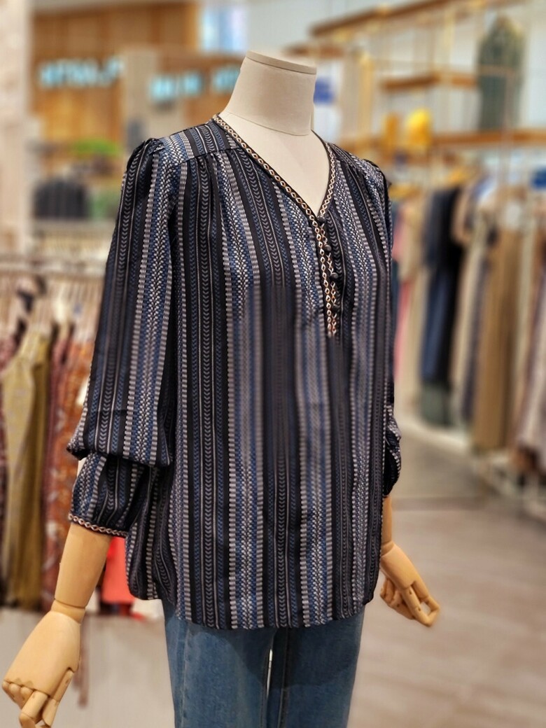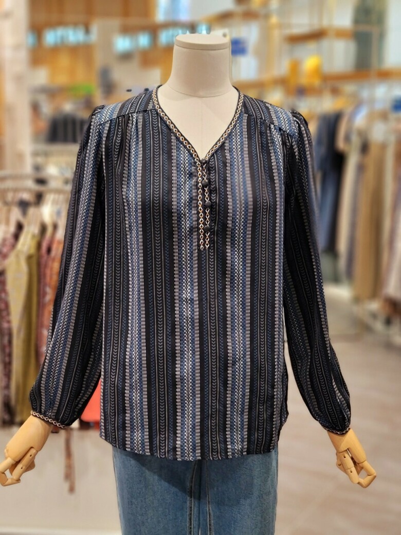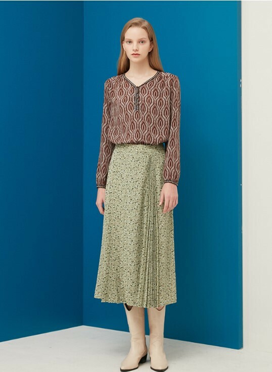 V넥 테잎장식 프린트 블라우스 PL3WB906