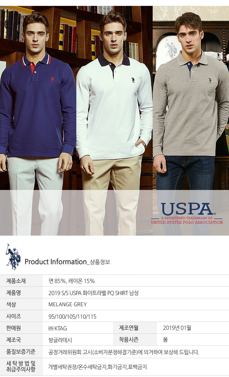 [USPA] 화이트라벨 봄 남성 긴팔PQ티셔츠(그레이)_HMP19-TS102