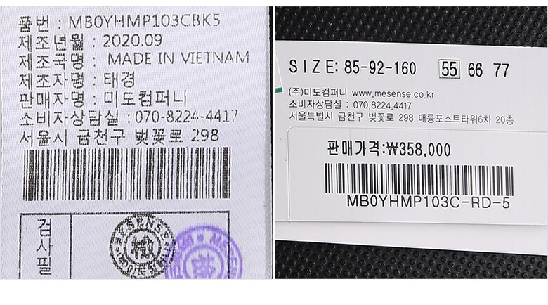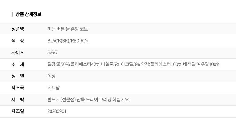 | 6. 세탁방법 및 취급시 주의사항 | 상세페이지 참조 |