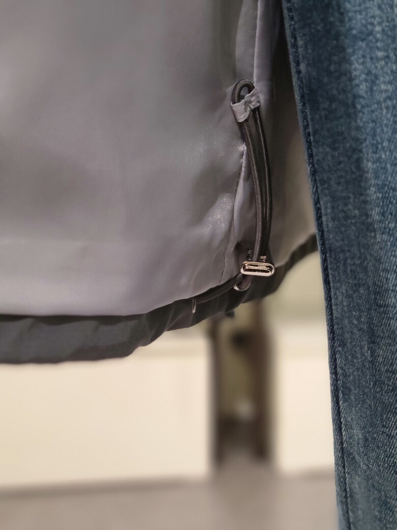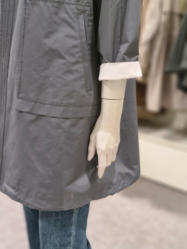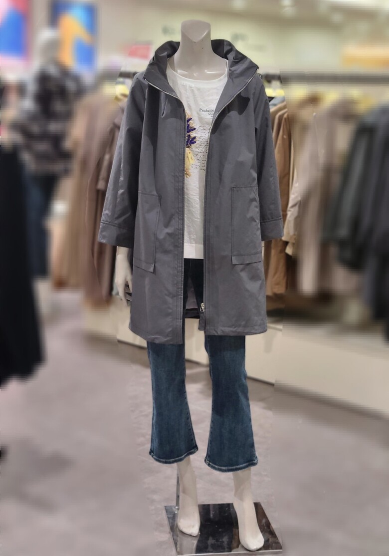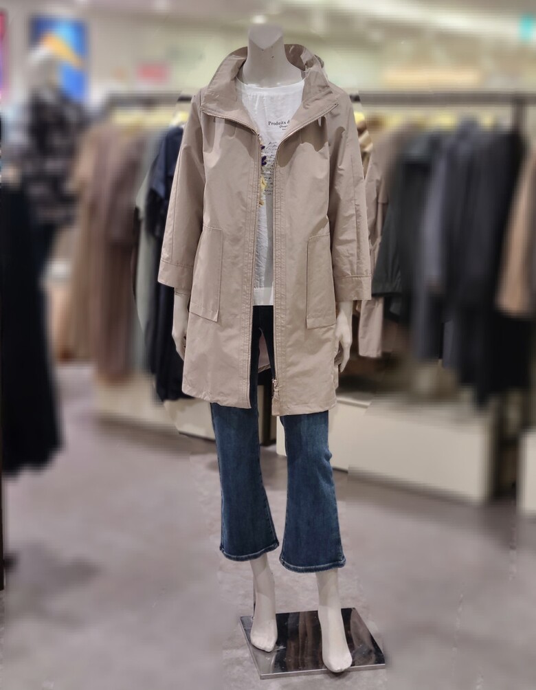 반 후드 카라에 허리와 밑단에 스트링으로 조절 가능한