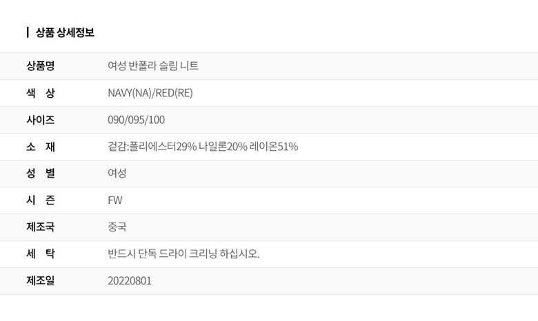 | 2. 색상 | NAVY(NA)/RED(RE) |