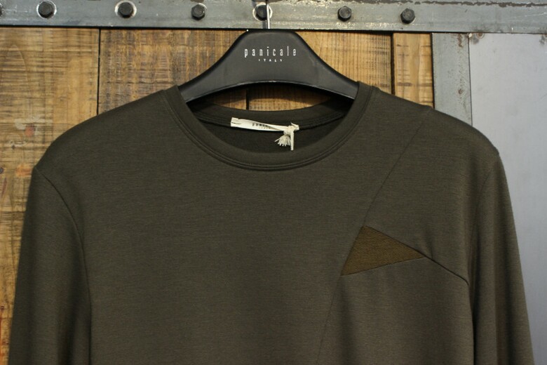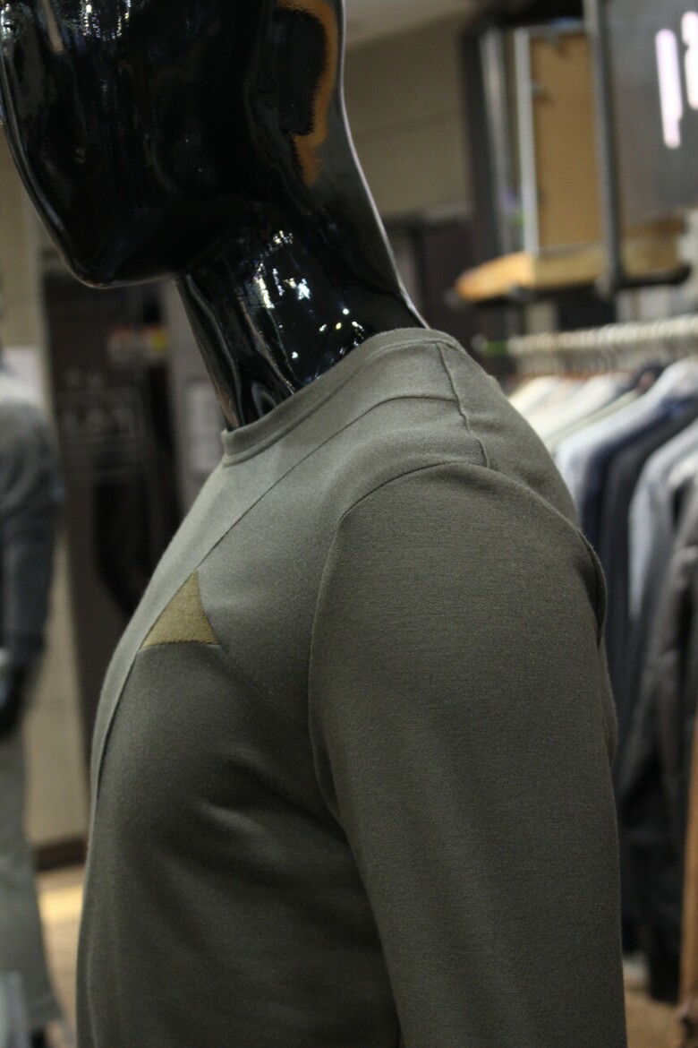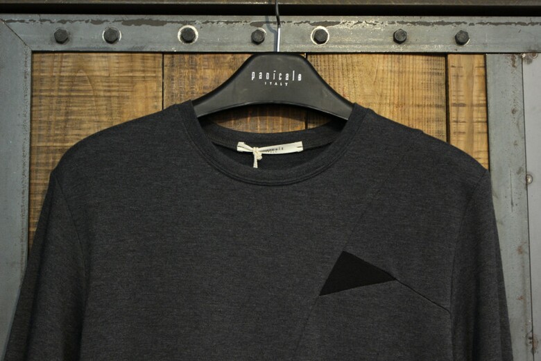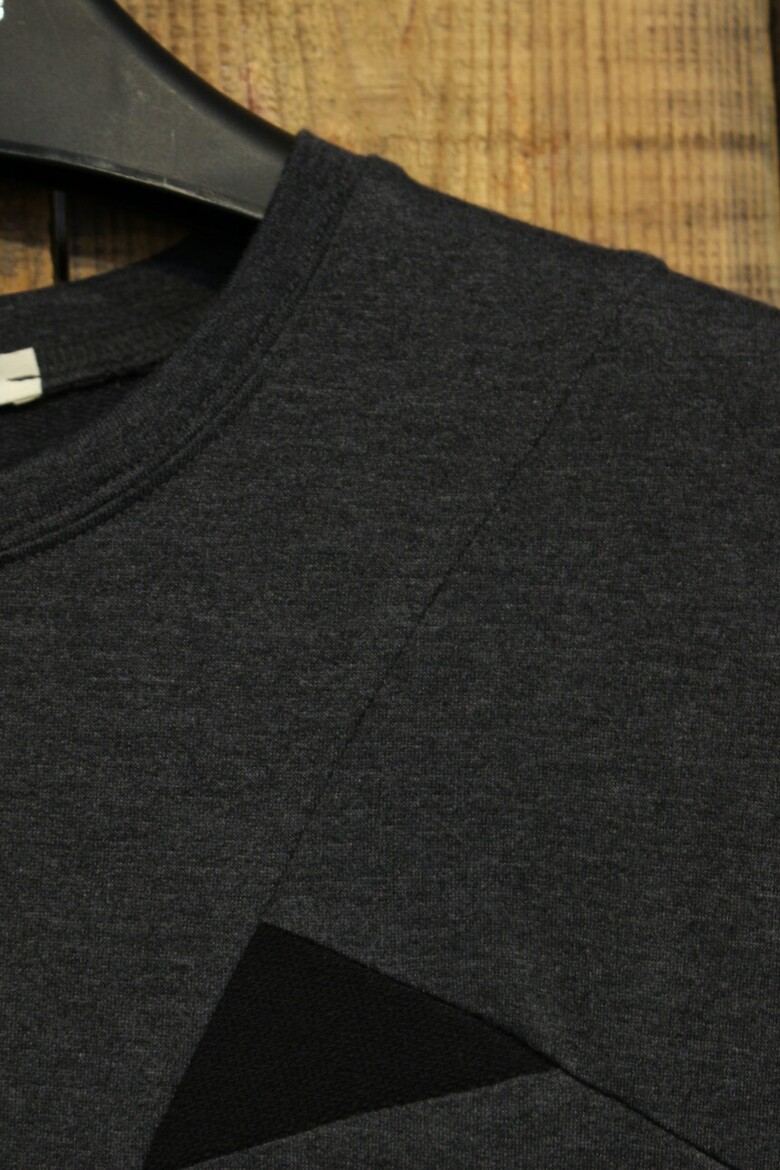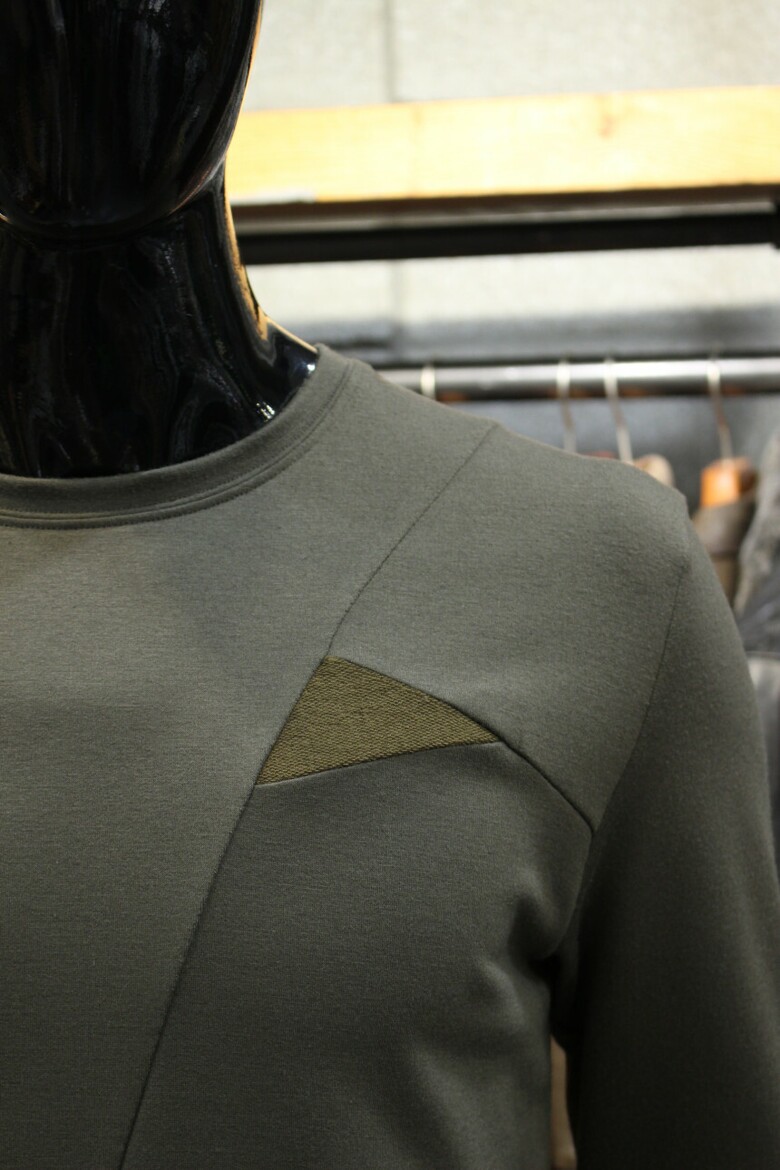 전면에 비대칭의 절개와 삼각배색을 넣어 포인트를 주었습니다