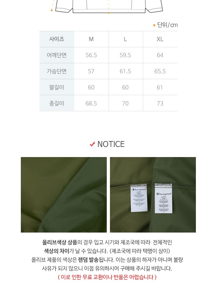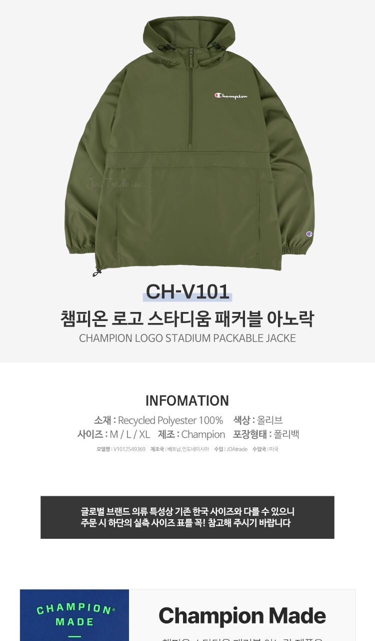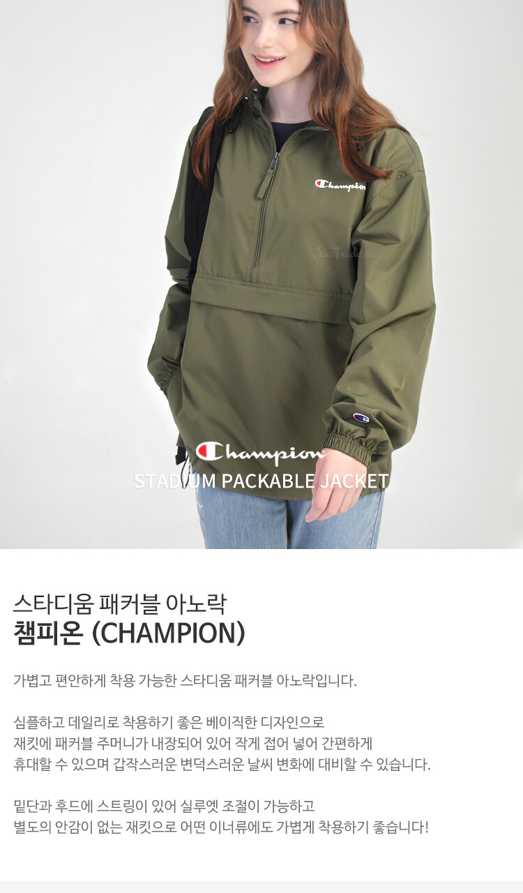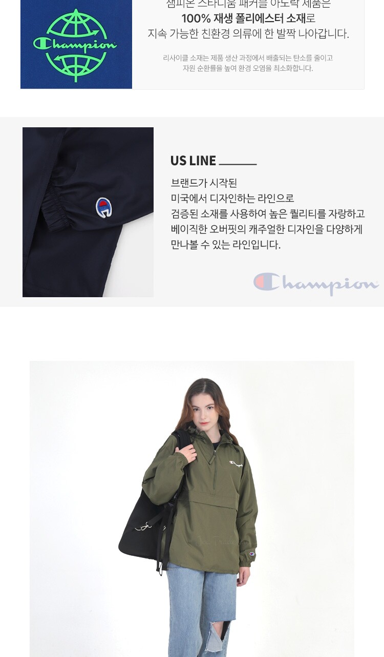 [챔피온]US Champion 로고 스타디움 패커블 아노락 올리브