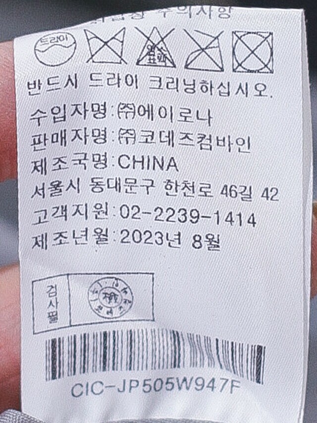 · 취급 시 주의사항 : 물세탁 금지, 기본 드라이