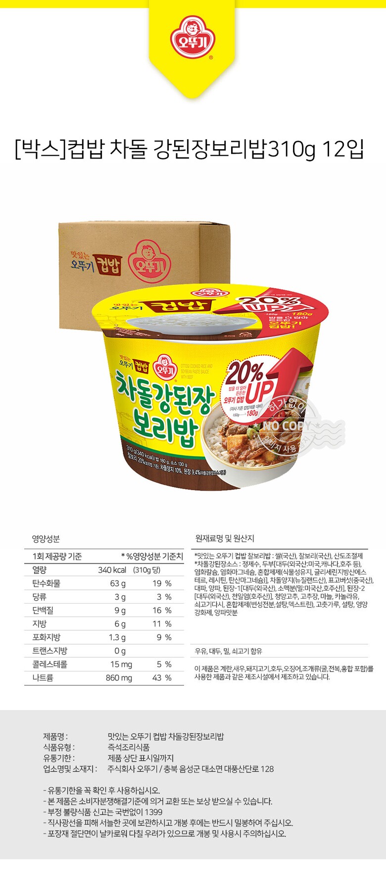 오뚜기 컵밥 차돌 강된장보리밥 310g 12개입 [박스]