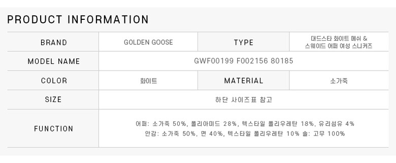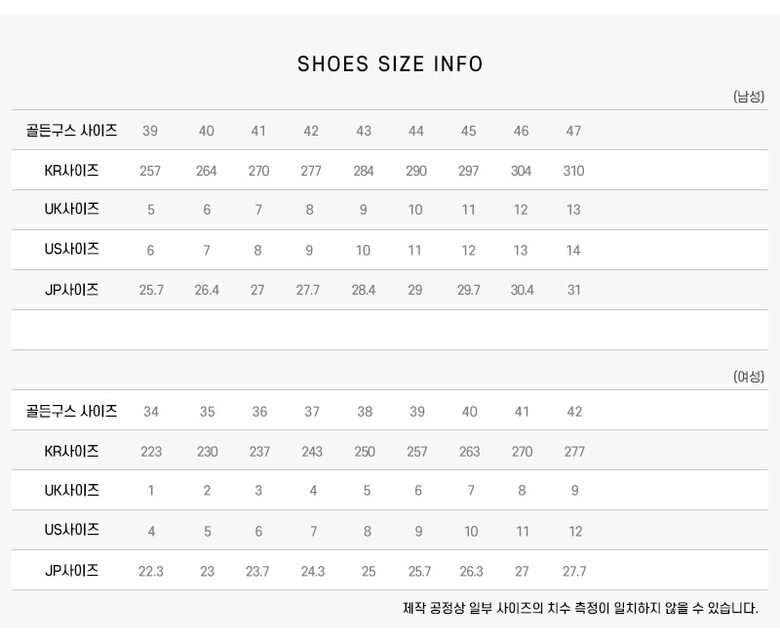 | 1. 제품 소재 (운동화인 경우에는 겉감, 안감을 구분하여 표시) | 상세페이지 참조 |