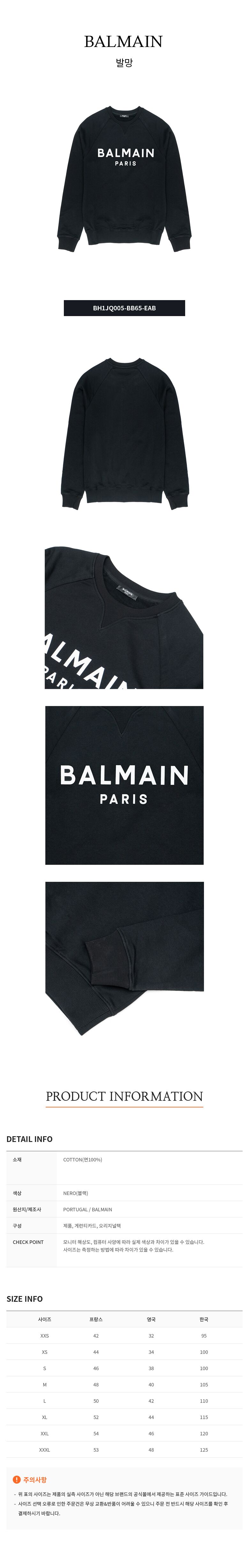 [명품] 발망 Paris 남성 스웨트셔츠 BH1JQ005 BB65 EAB