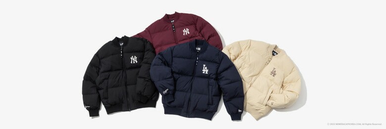 가슴 부분에는 MLB의 인기 구단인 뉴욕 양키스, LA 다저스의 로고가 배치되어 있으며, 소매 부분에는 뉴에라의 플래그 로고와 MLB의 팀 네임이 자수로 놓아져 있습니다. 밑단과 소매가 밴드로 되어있어 바람이 들어오는 것을 차단해 주며, 덕 다운 충전재를 사용하여 보온성이 뛰어납니다.