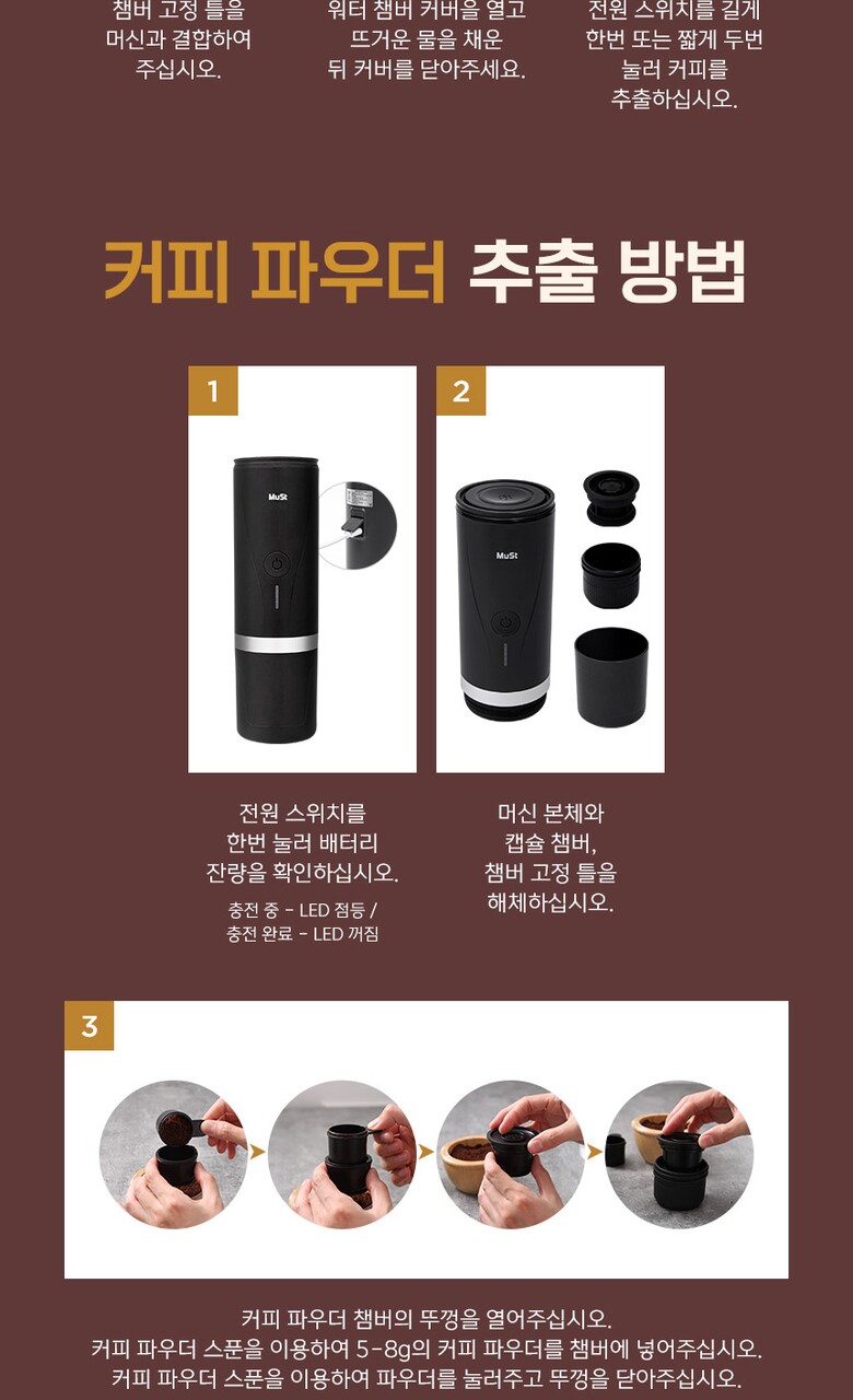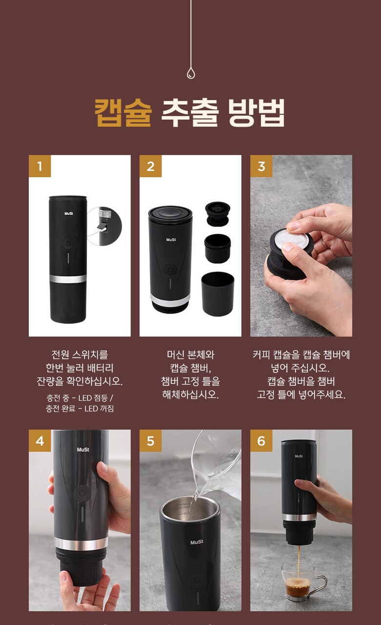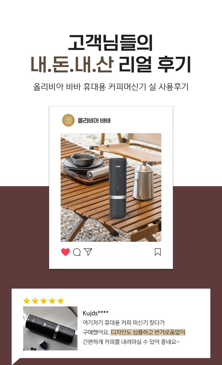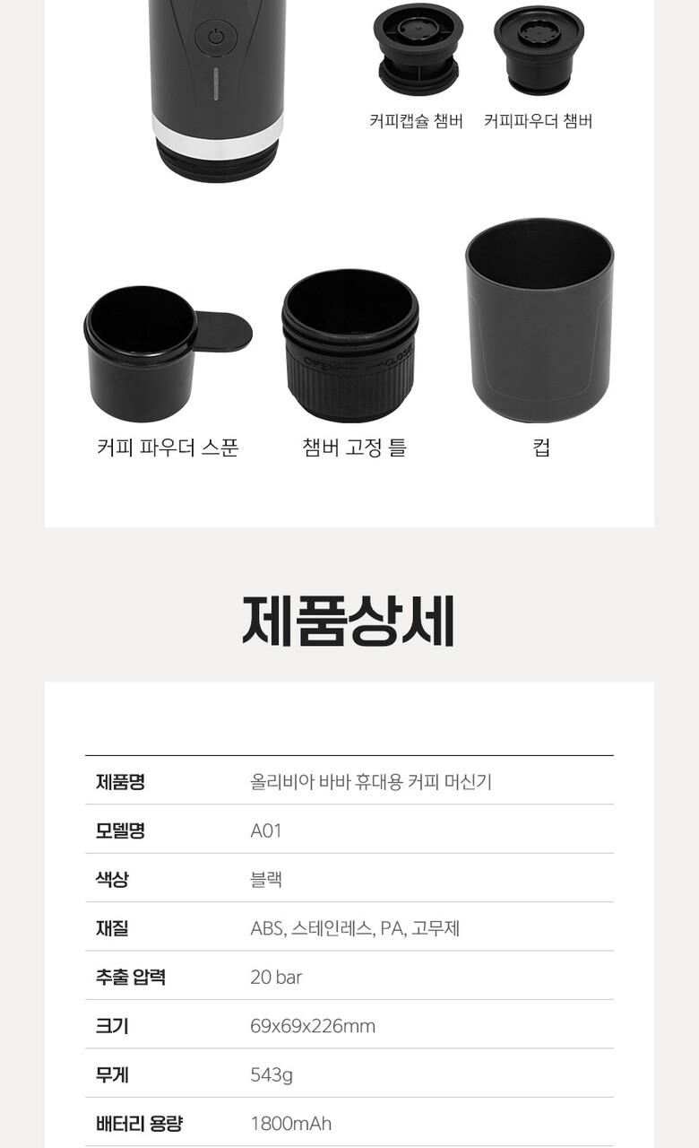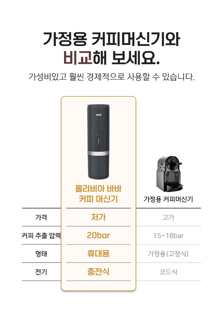 [올리비아바바] Must 휴대용 원두 캡슐 에스프레소 2in1 자동 커피 머신기