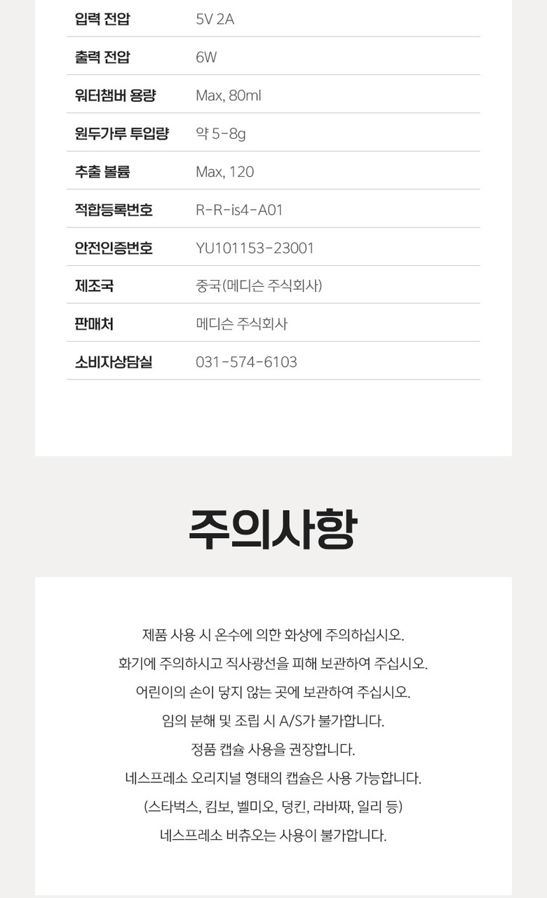 1. 모델명(품번) | 2in1 휴대용 자동 커피머신기 |