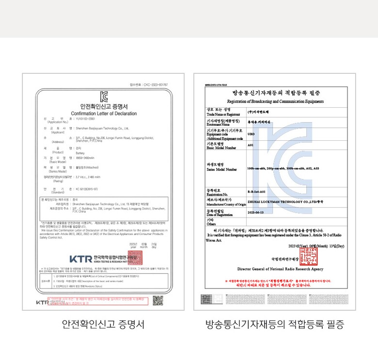 5. 전기안전인증 | 전기용품 안전확인 YU101153-23001 |
