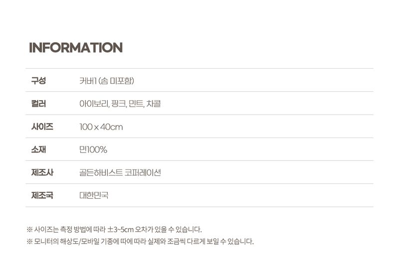 | 3. 치수 | 상세페이지 참조 |