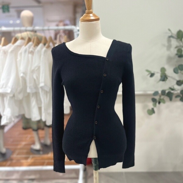 FTAKD1120_넥라인 언발 오프 가디건