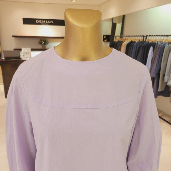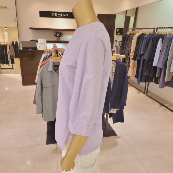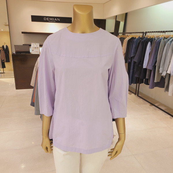 DH22506_밑단트임 7부소매 라운드 블라우스