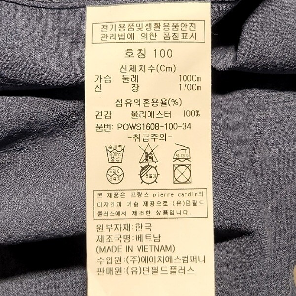 | 6. 세탁방법 및 취급시 주의사항 | 본 상품 케어라벨 참조 |