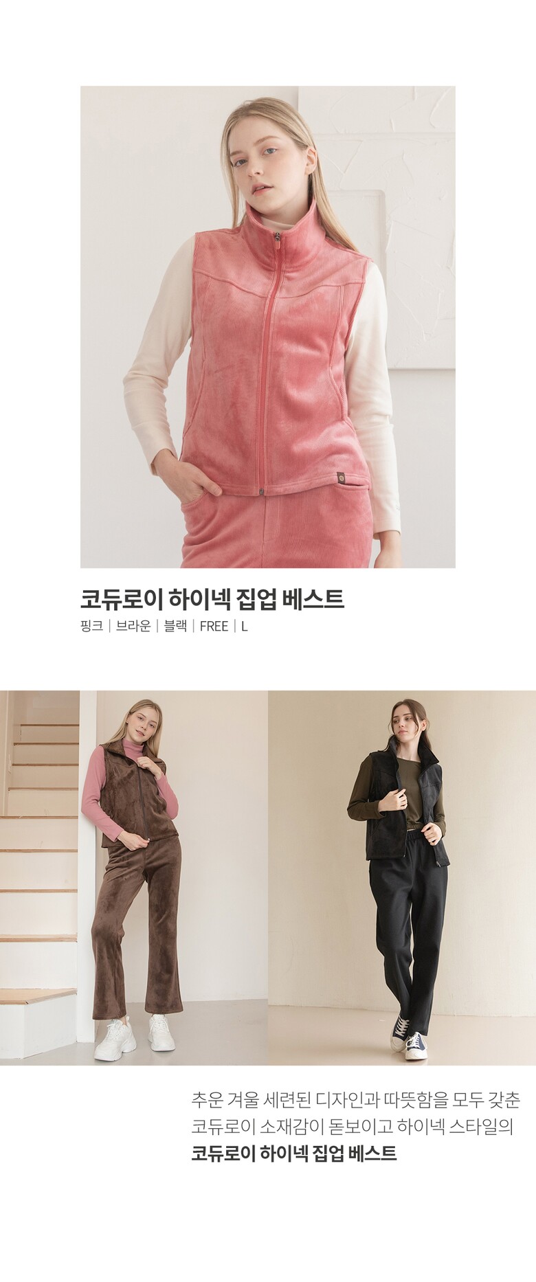 뒤란 코듀로이 하이넥 집업 베스트 DTF3W-5106 3colors