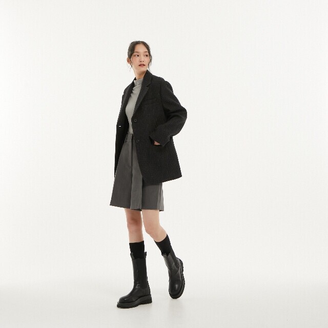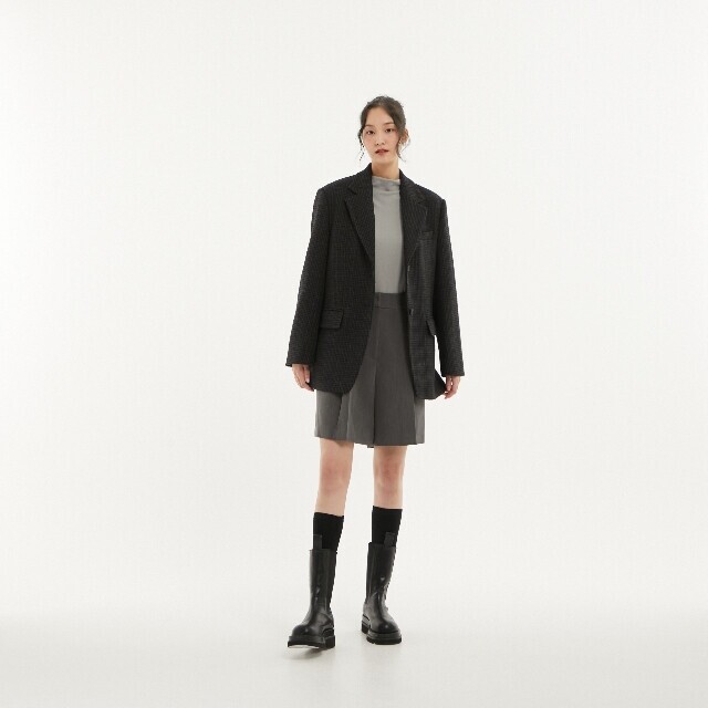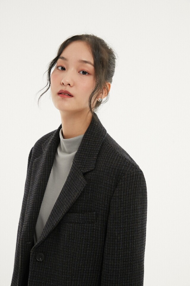 2버튼 잔 체크 박시 자켓 ~