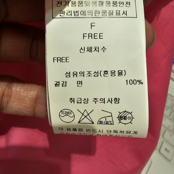| 1. 제품 소재 (섬유의 조성 또는 혼용률을 백분율로 표시, 기능성인 경우 성적서 또는 허가서) | 면 100% |