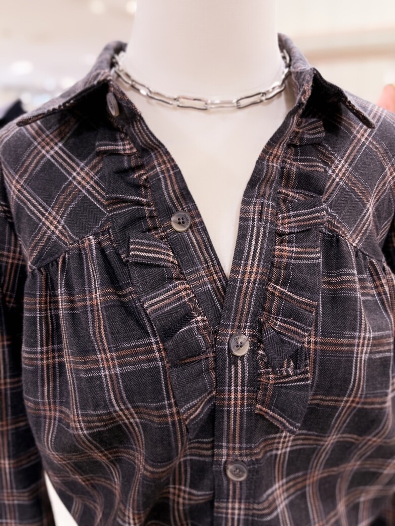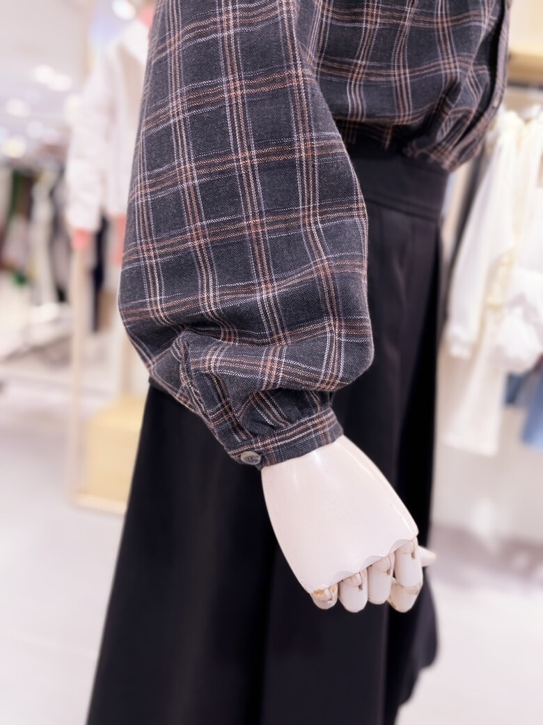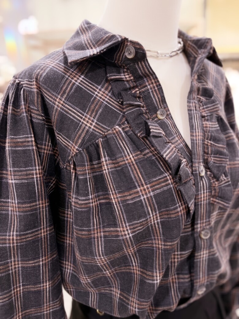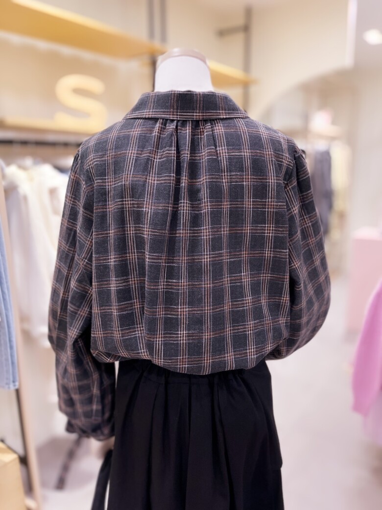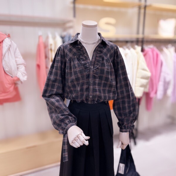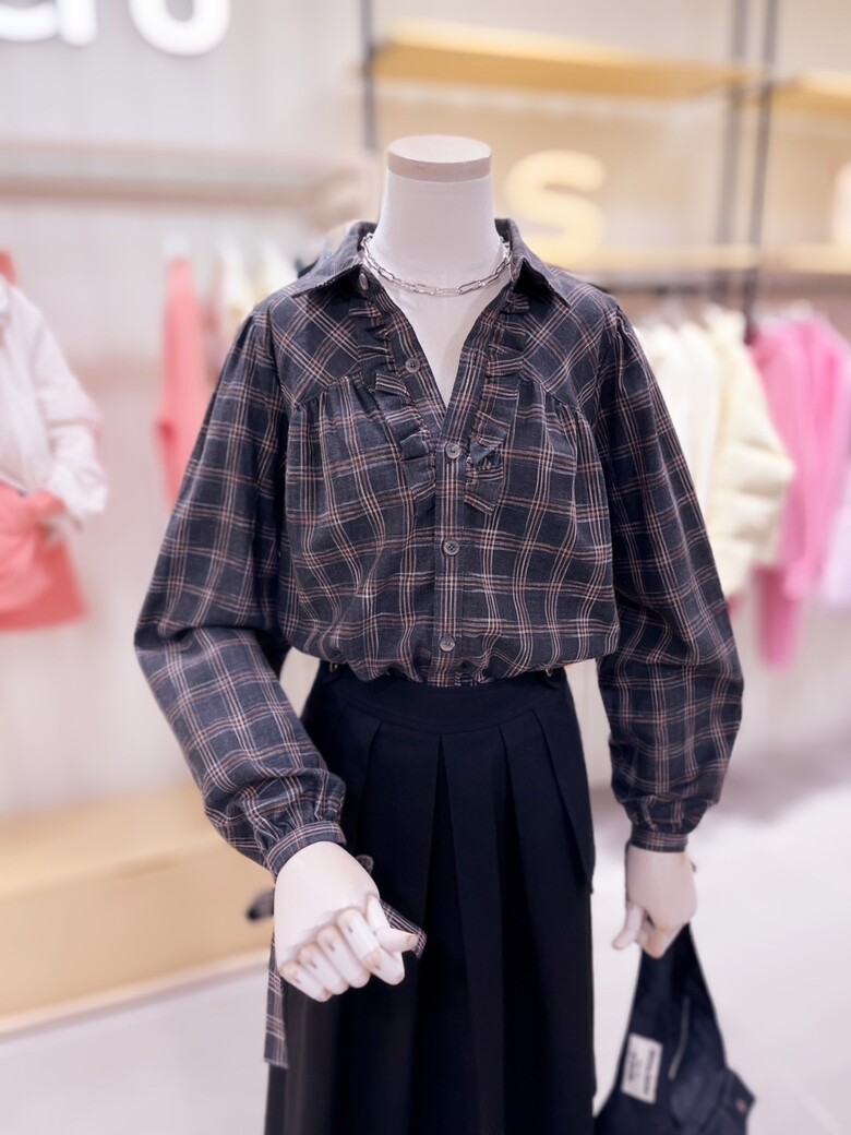 SG1SHF002_프릴 디테일 셔링 소매 체크 셔츠