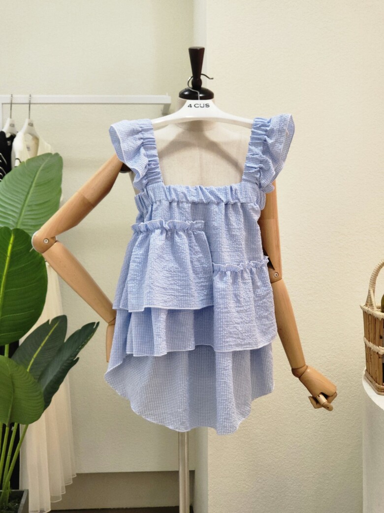 FM3F7BL05897_체크 프릴 캉캉 블라우스