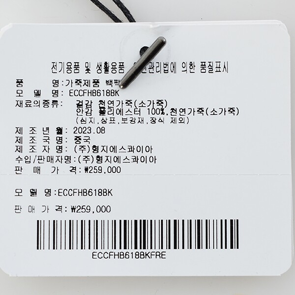 대구백화점SG 에스콰이아콜렉션 ECCFHB618BK 가죽 슬림백팩618
