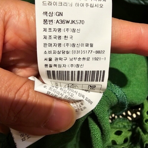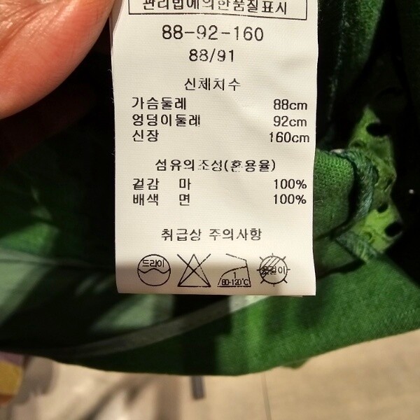 제품소재 : 겉감 마 100% 소매배색 면 100%