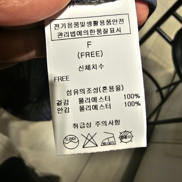 | 1. 제품 소재 (섬유의 조성 또는 혼용률을 백분율로 표시, 기능성인 경우 성적서 또는 허가서) | 겉감 안감 폴리에스터 100% |