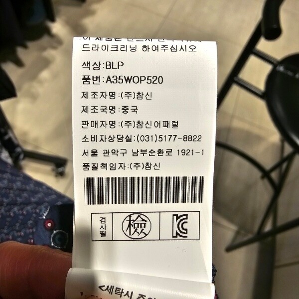 A/S 책임자와 전화번호 : AS 및 기타 문의 사항은 해당 매장 [오은숙,053-253-2520] 으로 전화주시면 감사하겠습니다.