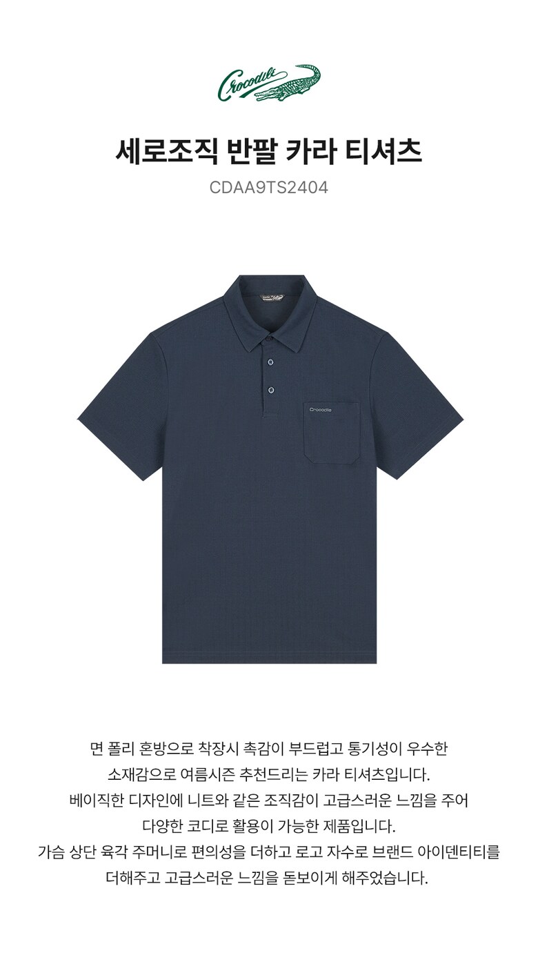 대구백화점SG 크로커다일 CDAA9TS2404 세로조직 반팔 카라 티셔츠