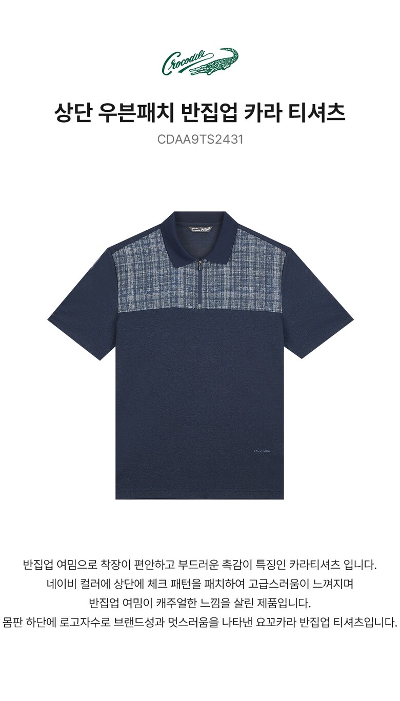 대구백화점SG 크로커다일 CDAA9TS2431 상단 우븐패치 반집업 카라 티셔츠