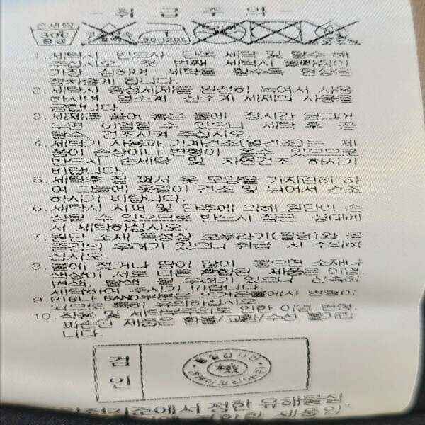 세탁방법 및 취급시 주의사항 : 상세 참조