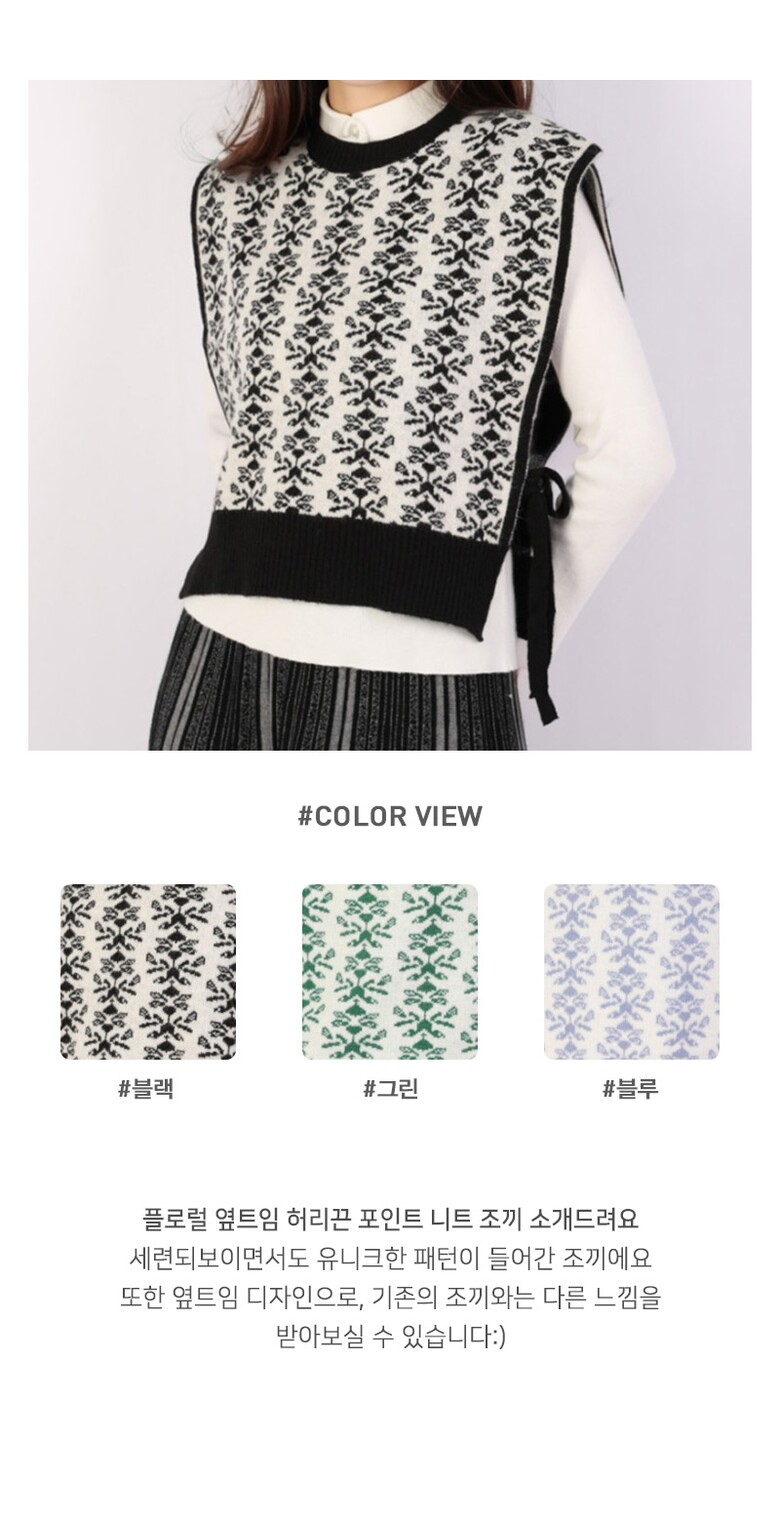빠른배송/플로럴 옆트임 허리끈 포인트 니트 조끼