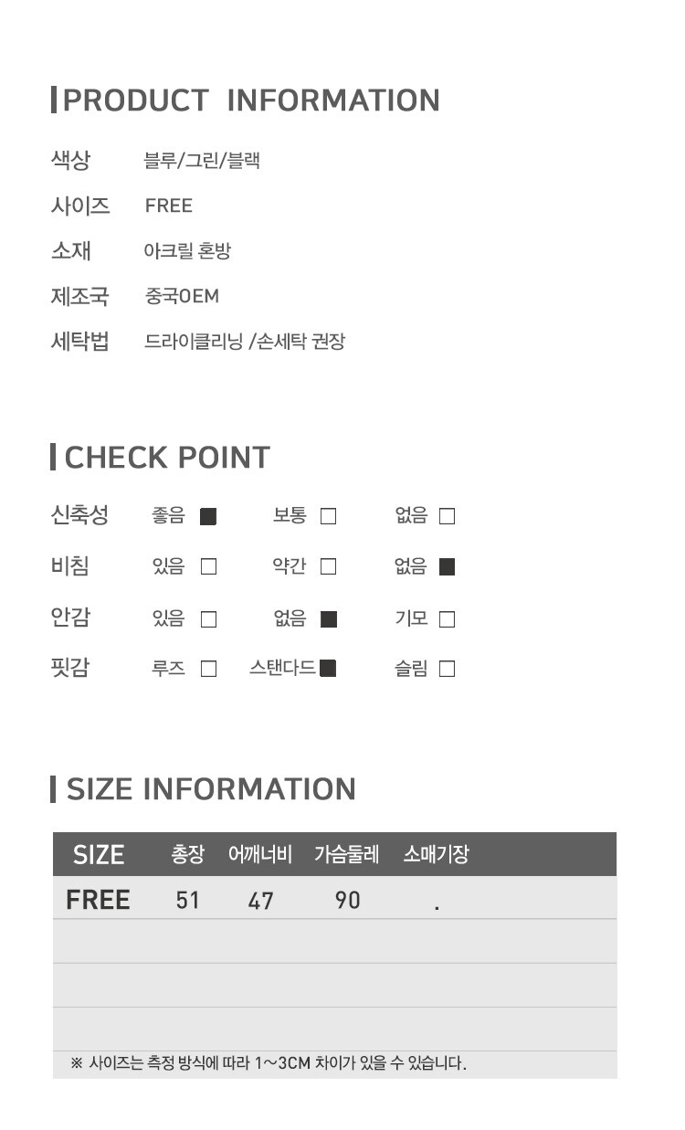 | 1. 제품 소재 (섬유의 조성 또는 혼용률을 백분율로 표시, 기능성인 경우 성적서 또는 허가서) | 상세페이지참고 |