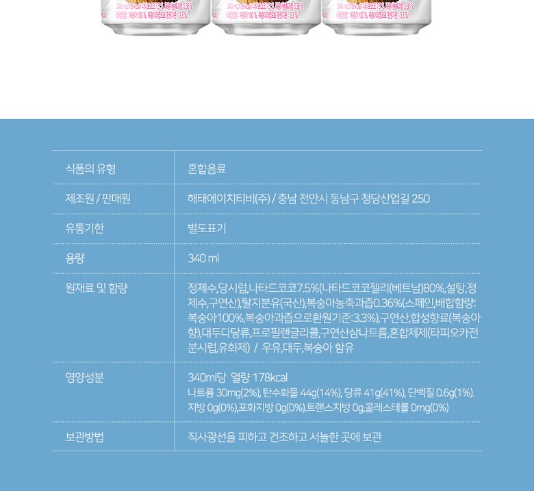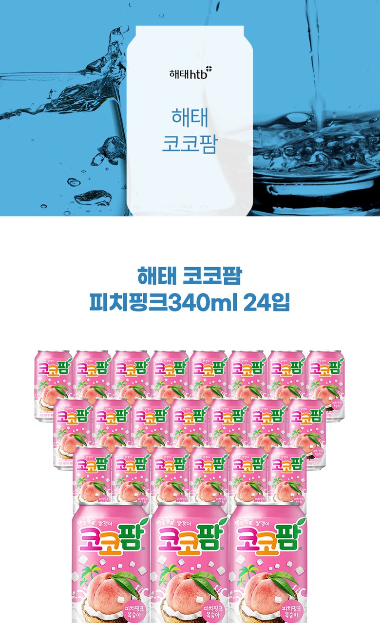 상세페이지의 내용이 일치하는지 확인 후 구매 부탁드립니다. 해당 상품은[ 해태 코코팜 피치핑크 340ml 24입 ] 구성의 상품입니다.