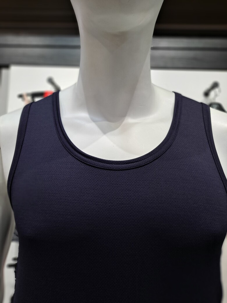 스포티한 스타일의 남성런닝 제품으로 남성들의 선호도가 높은 네이비컬러로 연출한 제품. 겨드랑이 부분에 조직감이 다른 메쉬를 매치하여 스포티한 느낌을 살림. 은은한 인팅 스트라이프가 들어간 메쉬제품으로 흡습속건의 기능이 있어 활동이 많은 날 시원하게 착용 가능함. 데일리용으로 추천하는 제품.