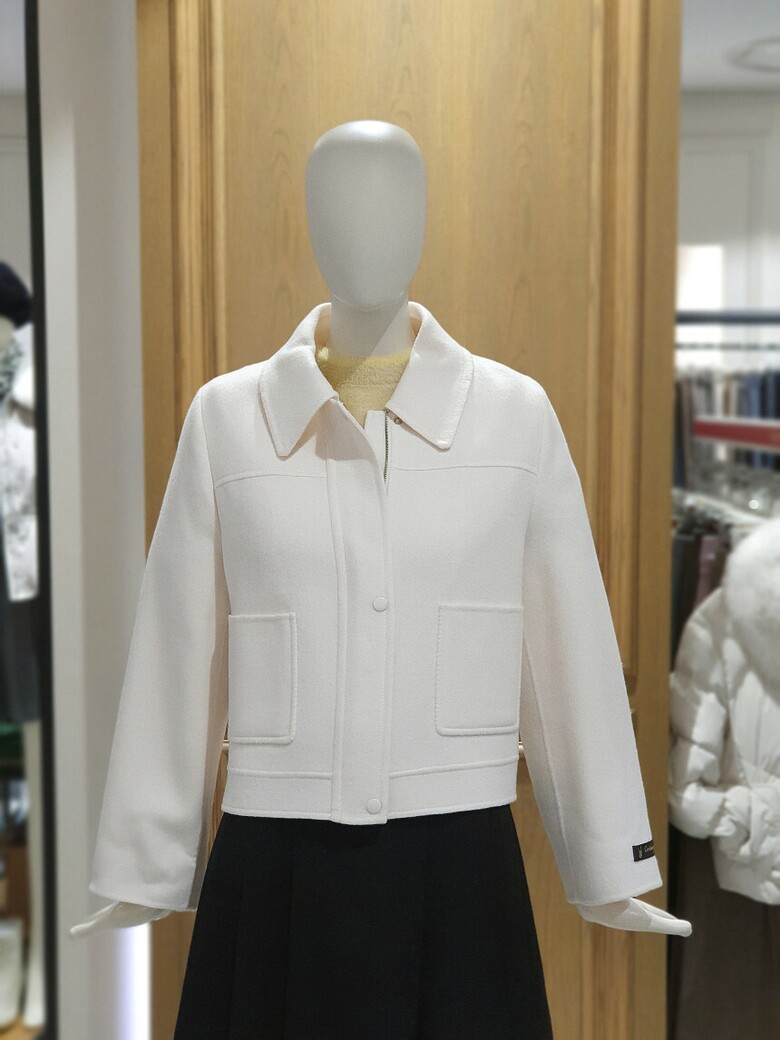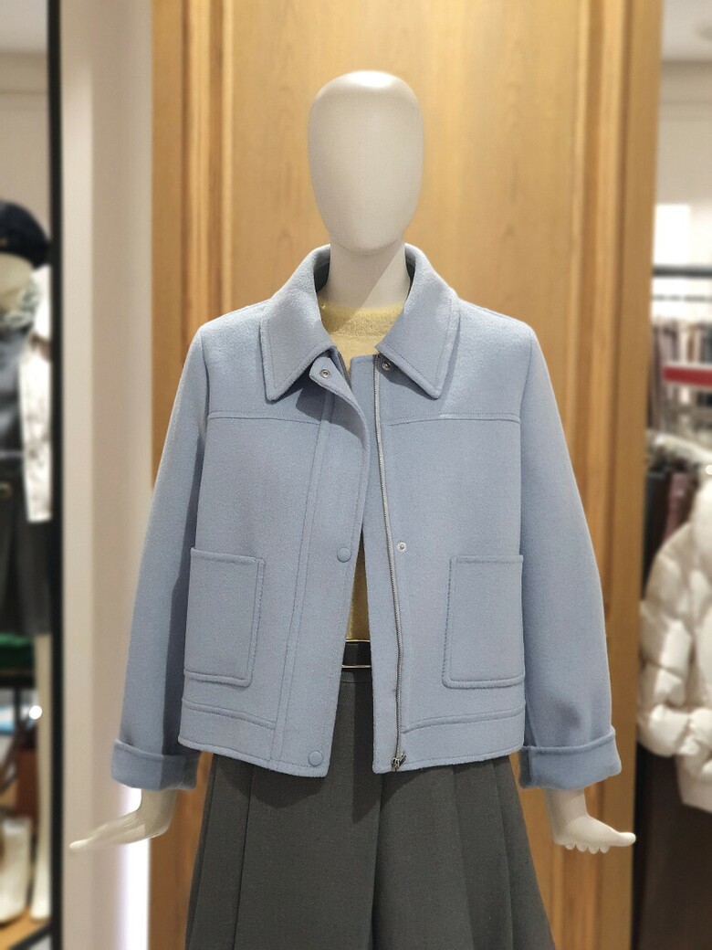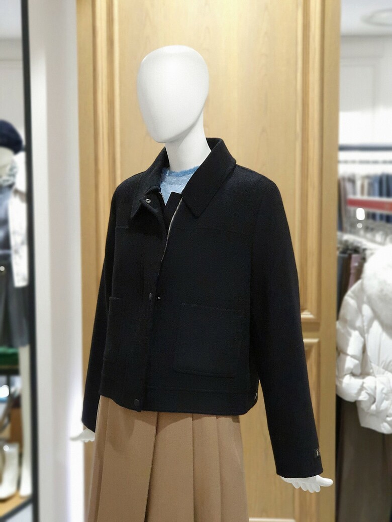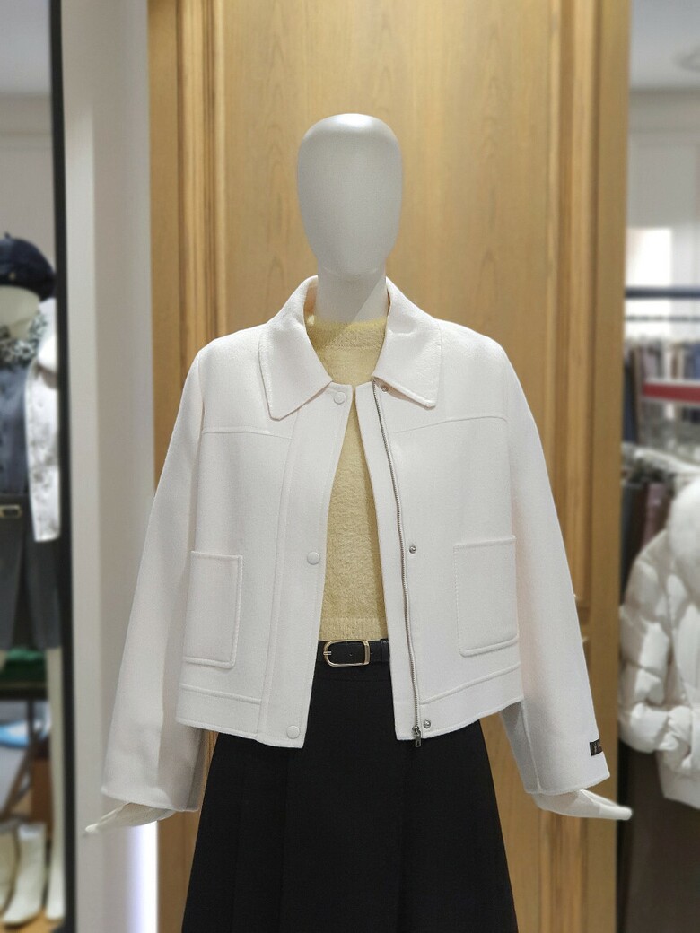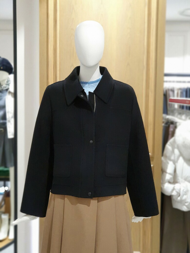스탠칼라 울 캐시미어 집업 숏코트 E234MSG157