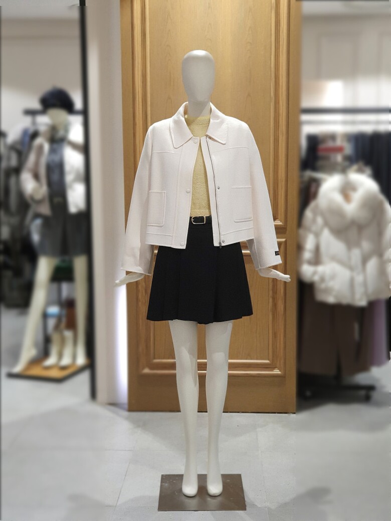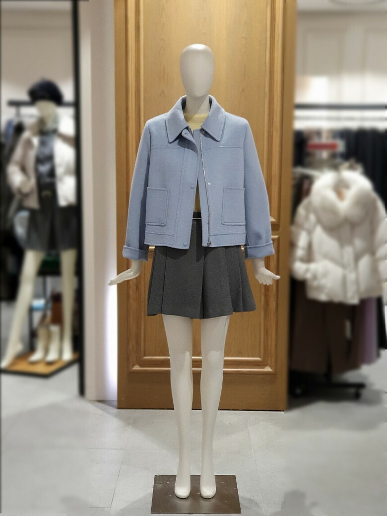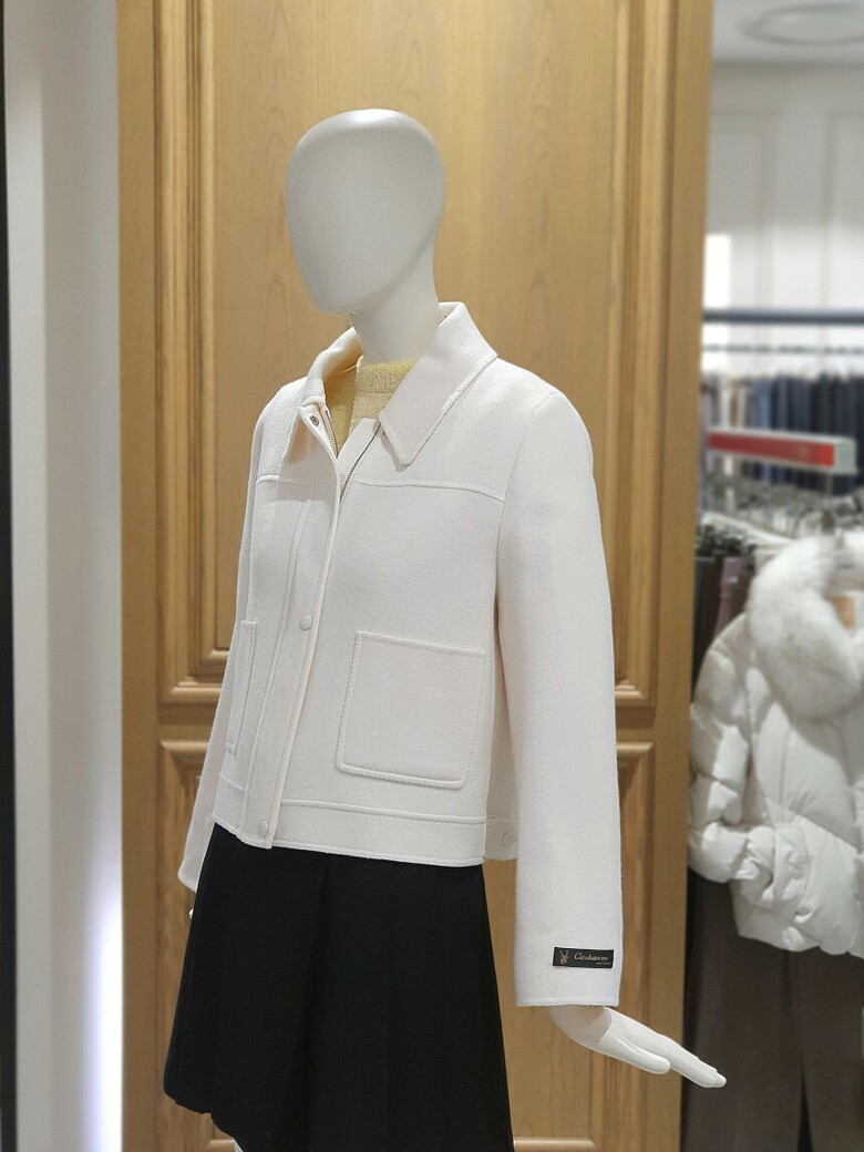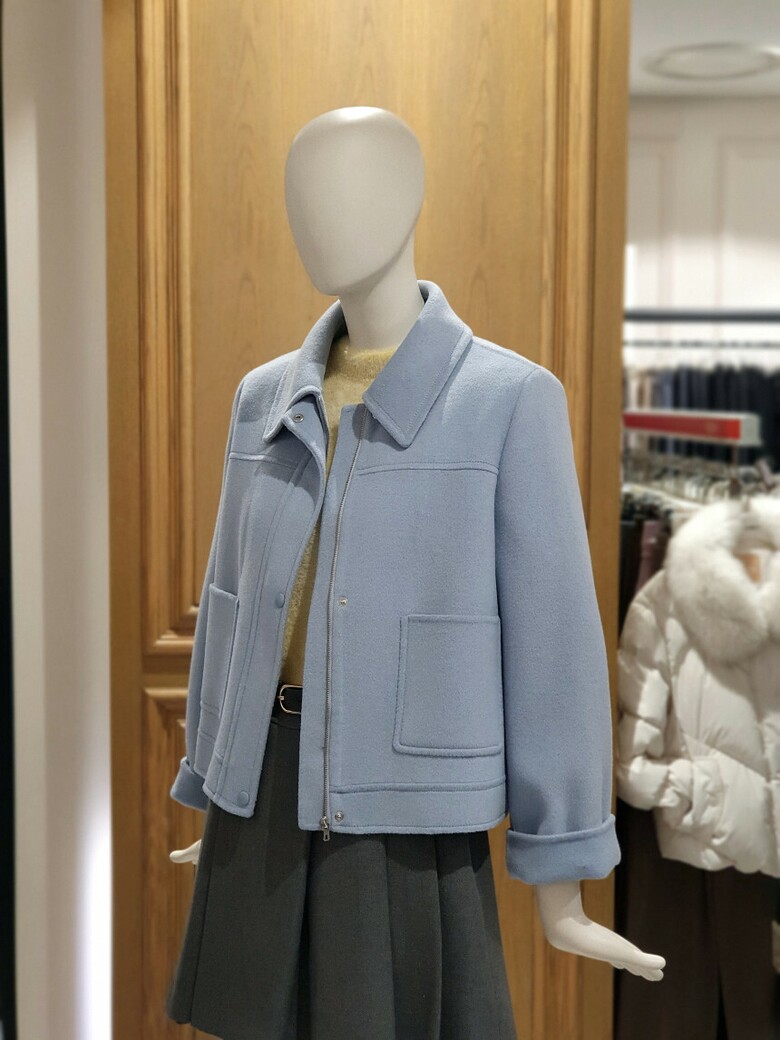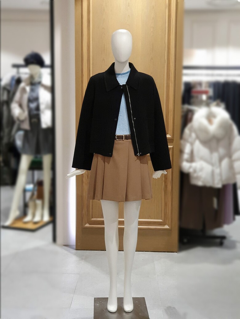 스탠칼라 울 캐시미어 집업 숏코트 E234MSG157