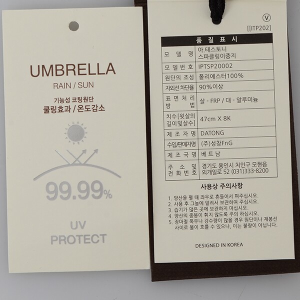| 6. 취급시 주의사항 | 무리하게 펼칠시 고장의 원인이 되므로 제품을 가볍게 좌우로 흔들어 접힌 원단을 풀어준 후 펼쳐주세요 사용후 통풍이 잘되는그늘에 말려 보관하세요 우.양산의 중봉이 휘지 않도록 강한 바람이나 충격에 주의하세요 |