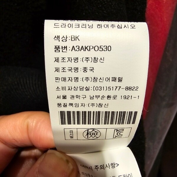 제조자 : (주)참신어패럴