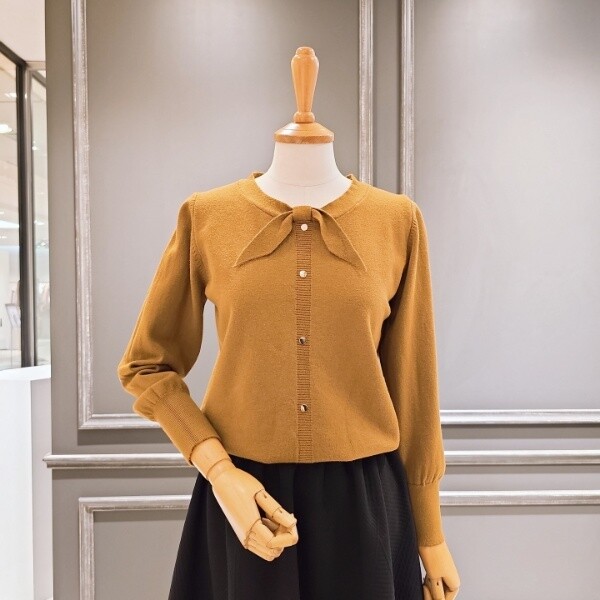 리본넥 디자인의 라운드 니트입니다