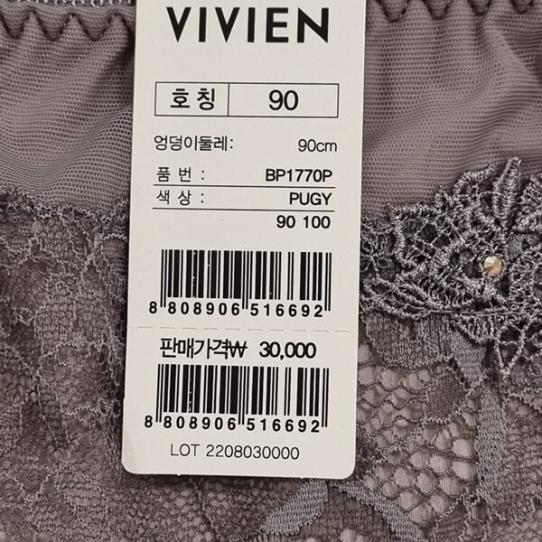 대구백화점SG 비비안 BP1770P PGY 22FW메인케미컬 모티프 햄팬티PY