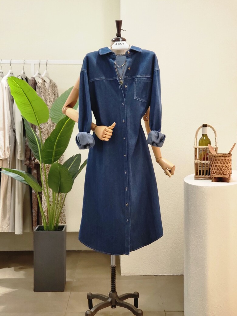 FF2H9OP5062_카라넥 앞포켓 일자 데님 원피스